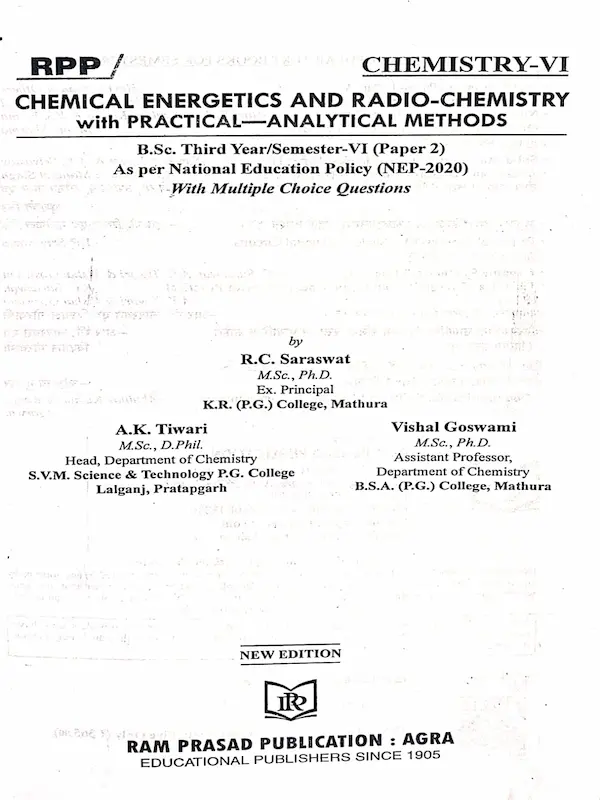 BSc Chemistry Semester 6 Book Chemical Energetics Radio Chemistry Analytical Methods Ram Prasad