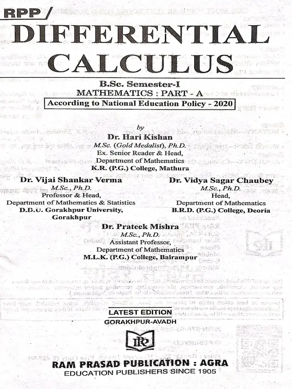 ₹295.00Original price was: ₹295.00.₹280.00Current price is: ₹280.00.BSc Mathematics Semester 1st Differential Calculus Book Part A Ram Prasad