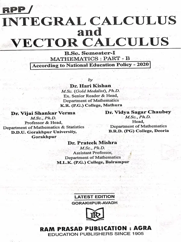 BSc Mathematics Semester 1 Combo Book Differential Calculus Integral Calculus and Vector Calculus Ram Prasad