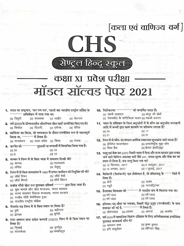 • CHS Class 11 Entrance Exam Book