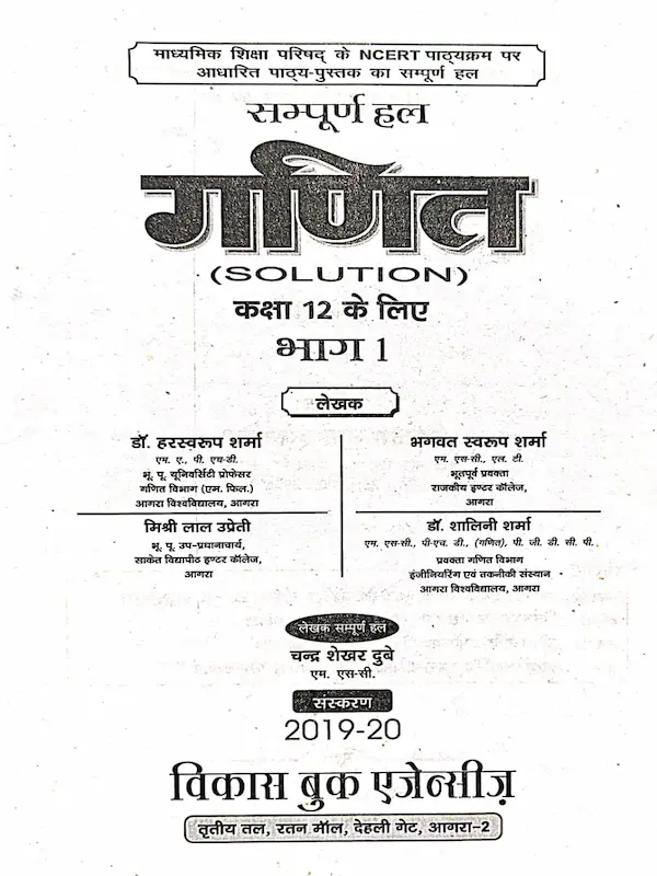 UP Board Class 12 Maths Solution Book Part 1 Dr Har Swaroop Sharma द्वारा लिखी गई यह guide book 2019-20 session के अनुसार तैयार की गई है