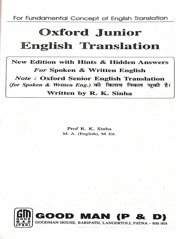 This Oxford Junior English Grammar and Translation combo book is specially designed for school students and Hindi medium learners. It explains English grammar rules and Hindi to English translation in simple and easy language.