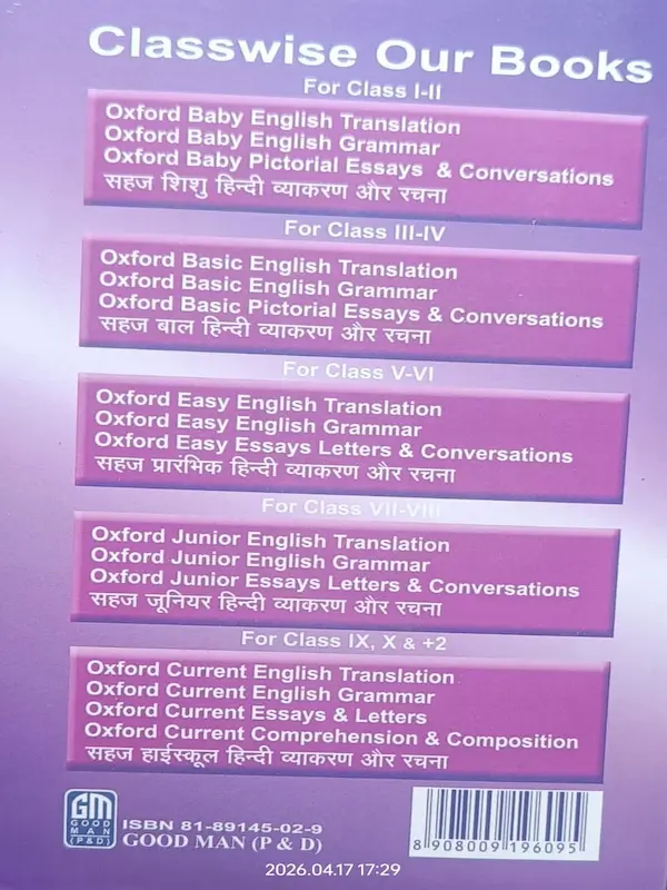 Oxford Junior English Translation book is an ideal book for students who want to improve their English translation skills from basic level. It is very helpful for Hindi medium learners who want to speak and write English confidently.