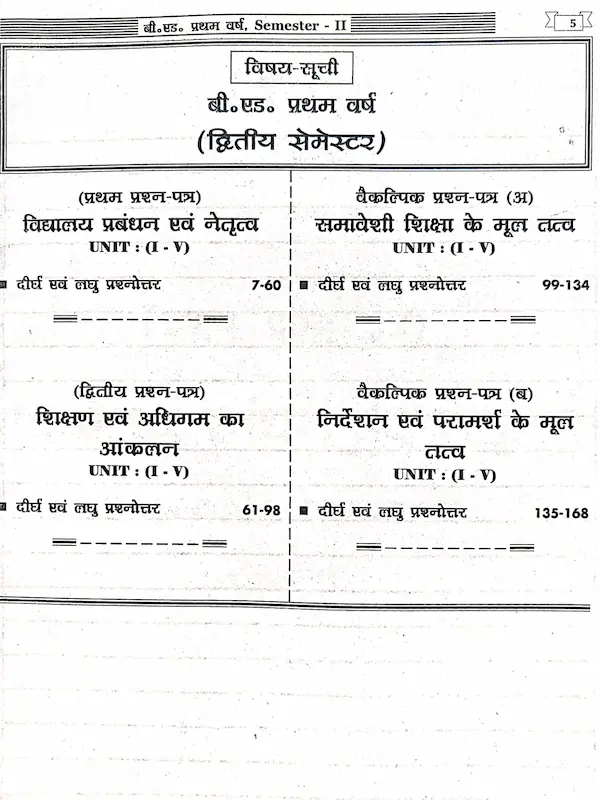 Rajendra Question Bank B.Ed. 1st Year 2nd Semester ek exam-oriented aur student-friendly pustak hai jo Deen Dayal Upadhyay Gorakhpur Vishwavidyalaya ke CBCS syllabus ke anusaar banayi gayi hai. Isme sabhi prashn-patra unit-wise solved format mein diye gaye hain jisse students ko aasani se revision aur preparation karne mein madad milti hai.
