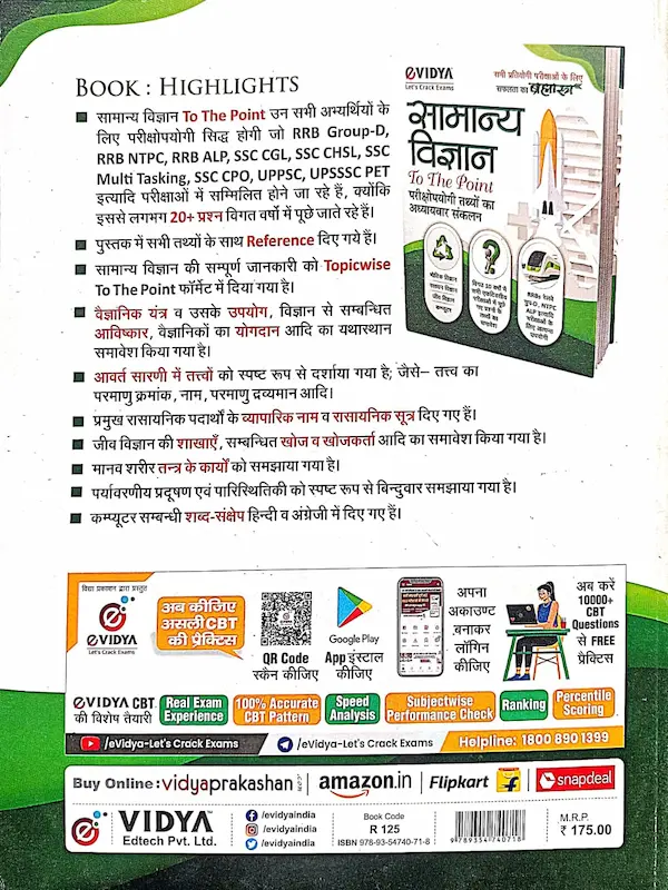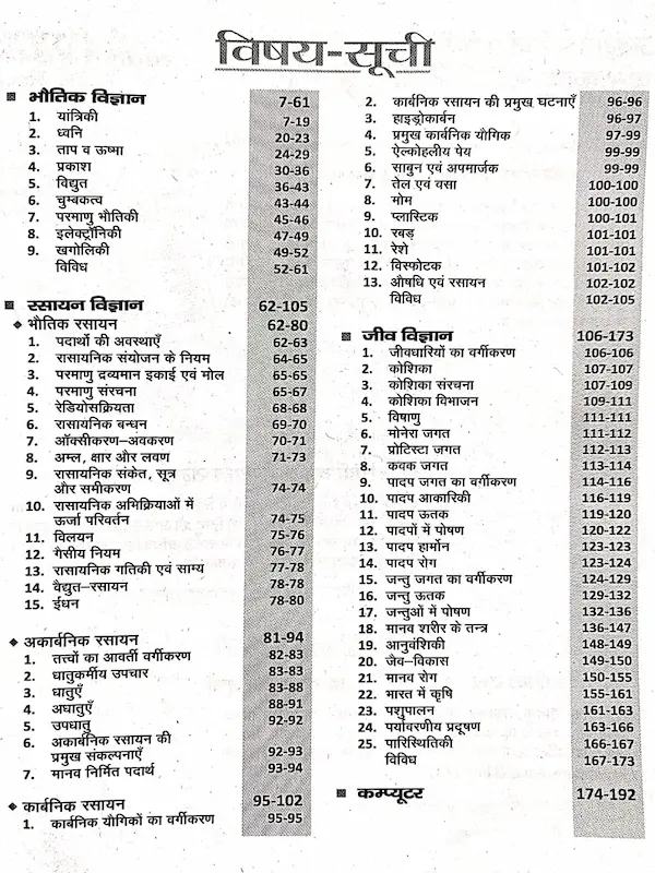 Is pustak mein bhoutik vigyan, rasayan vigyan, jeev vigyan aur computer ke prashn aur tathya systematically diye gaye hain jo pichhle varshon ke prashn pattern par aadharit hain.
