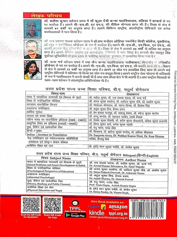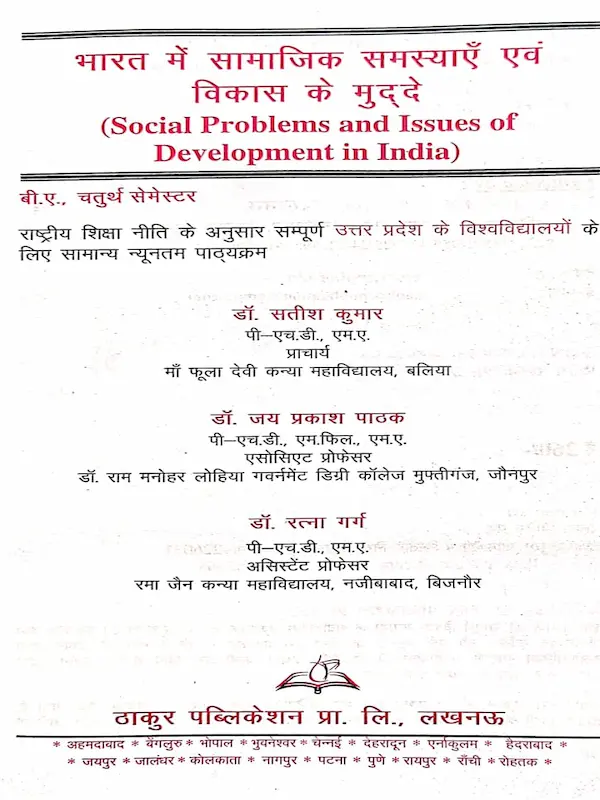 Samajshastra Bharat me Samajik Samasyayen avn Vikas ke Mudde BA 4th Semester pustak B.A. ke students ke liye ek mahatvapurn Hindi medium academic guide hai jo samajik muddon aur vikas se jude vishayon ko saral aur vyavasthit roop me prastut karti hai.