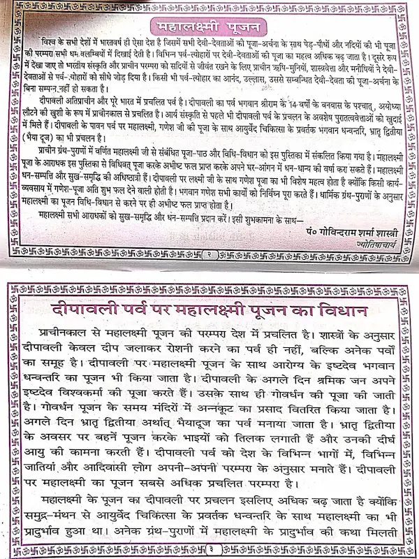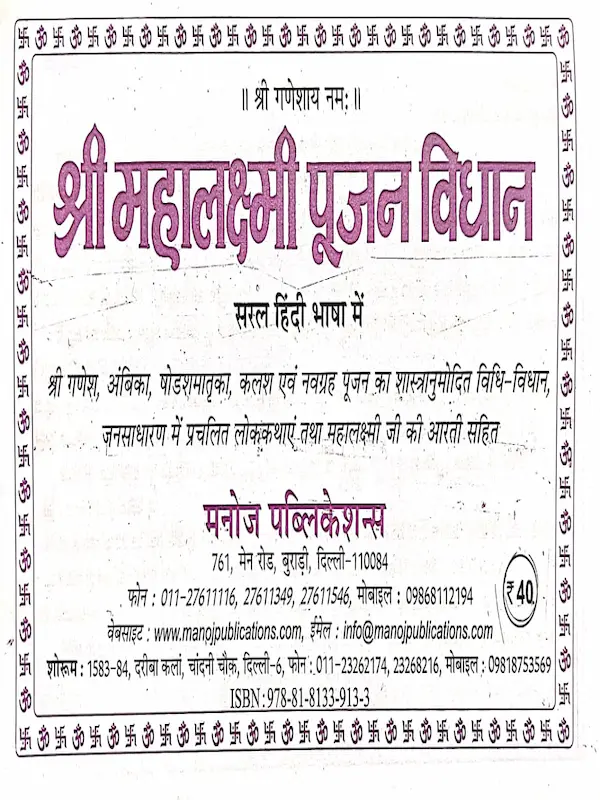 Shri Mahalaxmi Pujan Vidhi Book is a detailed Hindi guide for performing Mahalaxmi pooja with proper rituals and methods. This book includes complete pooja vidhi, mantras, and traditional procedures followed during Diwali and other religious occasions.